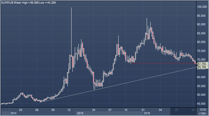 Курс евро к рублю упал до минимума за четырнадцать месяцев