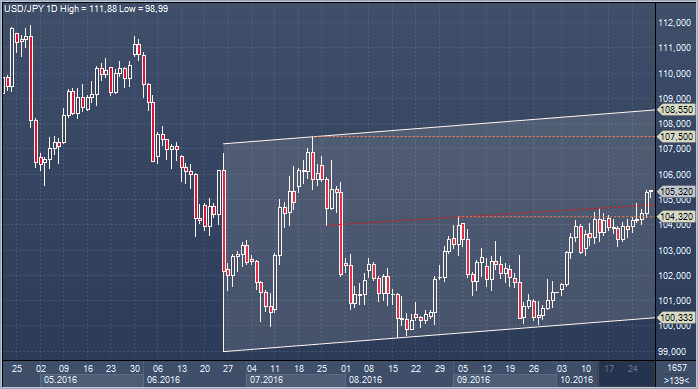 Тем временем, в доллар/иене оформилось двойное основание, получившее подтверждение при закрытии выше 104.32. Его цель — 108.50, при этом неподалеку проходит линия шеи более масштабной разворотной модели. В Citi отмечают, что закрытие выше 107.40/50 (здесь, в частности, проходит 55-дневная sma, будет сильным бычьим сигналом, предполагающим смещение фокуса к 114/116.