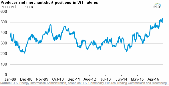 В целом, если посмотреть на данные Комиссии по торговле товарными фьючерсами (CFTC) США, они уже активно предпринимают меры в том направлении: по состоянию на 11 октября объем коротких позиций производителей во фьючерсах на нефть WTI достиг 540 000 контрактов, что является максимальным уровнем с 2007 года. Отчасти подобные показатели объясняются ужесточением кредитных условий для нефтяных компаний: банки зачастую требуют хеджирования рисков для одобрения решения о предоставлении кредитов.