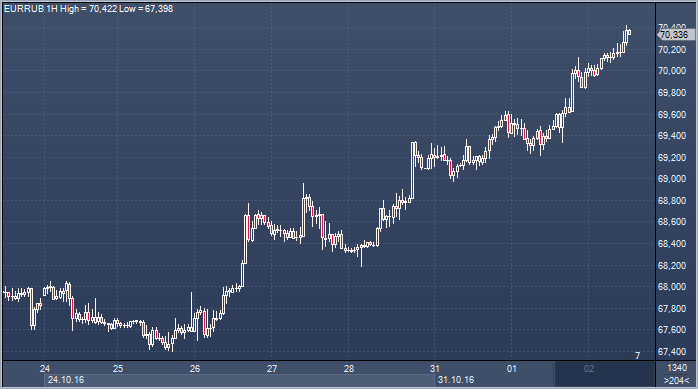 | 02.11.16 11:44 | Паника нарастает, инвесторы скупают золото и франк | 02.11.16 13:05 | Sberbank CIB ждет дальнейшего ослабления рубля |