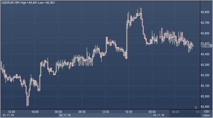 Рубль немного растет к доллару, но снижается к евро после открытия торгов на Московской бирже в четверг. Рубль поддерживает коррекция цен на нефть, но пока ее влияние слабое. Евро растет на фоне дальнейшего ралли евро к доллару. Эксперты связали это с опросом, который появился в начале недели. Согласно опросу, проведенному телеканалом ABC и газетой The Washington Post, за Трампа готовы отдать голоса 46% респондентов, тогда как за Клинтон - лишь 45%. Падение рейтинга Клинтон, по всей видимости, связано с информацией американских СМИ о том, что директор ФБР Джеймс Коми ранее уведомил Конгресс о возобновлении расследования по делу об использовании ею во время работы госсекретарем личной электронной почты в рабочих целях. Однако пока у аналитиков нет единого мнения, какова будет реакция доллара на тот или иной исход выборов 8 ноября. Однозначной представляется разве что его реакция к мексиканскому песо и луни. К остальным валютам доллар может упасть, особенно к ведущим. Как бы там ни было, евро на время позабыл про то, что в декабре ЕЦБ, скорее всего, продлит программу количественного смягчения, и показывает сильный рост к доллару. Однако технические осцилляторы показывают, что ралли достигло апогея, поэтому можно предположить, что в ближайшие дни евро/доллар будет снижаться, что отразится и на расстановку сил этих валют к рублю.