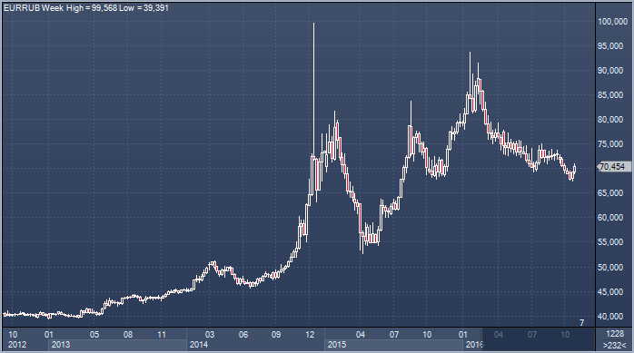 Поскольку все больше центральных банков в странах с развивающейся экономикой стремятся снизить ставки, чтобы стимулировать тусклый рост своих экономик, количество активов, приносящих доход меньше нуля, увеличивается, поощряя управляющих активами скупать более высокодоходные активы, везде, где они их только могут отыскать. Рубль непрерывно рос после достижения рекордно низкого уровня 85.999 за доллар в январе, и торгуется сейчас по 63.7 в Москве, что является ростом на 15 процентов в этом году. Рубль близок к тому, чтобы показать свой первый ежегодный прогресс с 2012 года. 60 процентов из 20 аналитиков, опрошенных Bloomberg, сказали, что они не ожидают коррекции валюты России до конца года. "Рынок голоден до доходности", - сказал Том Левинсон, старший валютный стратег и эксперт по процентным ставкам в Москве в Сбербанк КИБ, инвестиционно-банковского подразделения крупнейшего в России кредитора и второй наиболее точный предсказатель курса рубля в последнем рейтинги Блумберга. Он ждет, что рубль поднимется до 61 за доллар к концу года. "До тех пор, пока волатильность на мировых рынках остается низкой, эти сделки (кэри-трейд — прим. PFS) могут оставаться популярными". Чистые спекулятивные ставки на усиление рубля выросли до максимума, создавая риск резкого закрытия таких спекулятивных позиций, что обычно сопровождается ощутимым падением валюты.