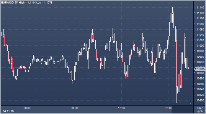 Доллар незначительно укрепился, после того как отчет Минтруда показал, что в США в октябре было создано 161 000 новых рабочих мест, укрепив ожидания того, что Федеральная резервная система повысит процентные ставки в следующем месяце. Заработная плата ускорила рост, подав знак, что инфляция может ускориться до таргетируемых ФРС 2 процентов. Доллар США вырос против большинства основных валют, после того как доклад Министерства труда немного не дотянул до среднего прогноза в 173 000 в опросе экономистов от Bloomberg. Однако показатель сентября был пересмотрен вверх на 35 000. "Рост заработных плат оказался сильнее, чем ожидалось, и именно поэтому вы увидели, что доллар укрепляется", - сказал Ян Гордон, валютный стратег Bank of America Corp. в Нью-Йорке. "Но просто, принимая во внимание выборы во вторник, реакция на доклад будет недолгой. Рынок будет переориентироваться на выборы, поэтому мы не увидим устойчивого положительного влияния данных на доллар".