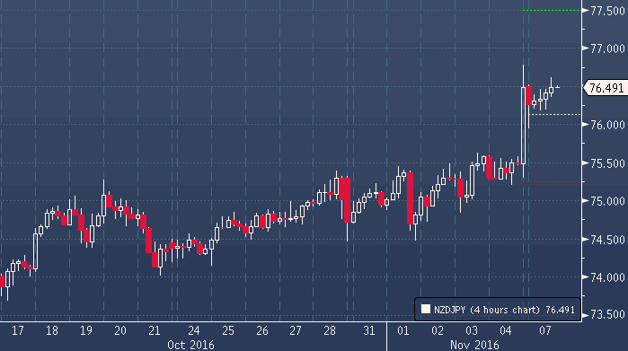 Киви/иена. 7 ноября: покупка от 76.13, цель 77.50, стоп 75.25