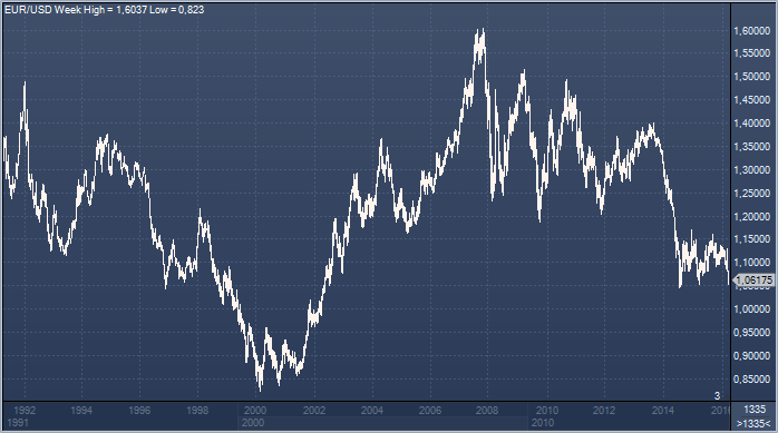 Oppenheimer: евро может упасть ниже паритета с долларом в 2017