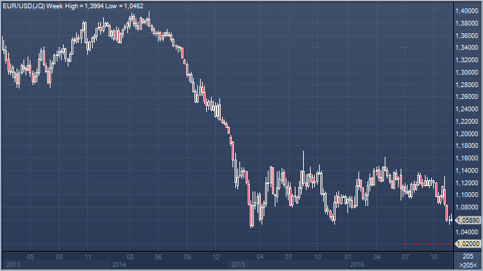 Bank of America: евро/доллар подешевеет до $1.02, а потом вырастет до $1.10