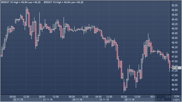 Надежды и опасения в отношении возможного сокращения производства нефти ОПЕК продолжают определять колебания рынка. Цены на нефть неожиданно восстановились после отрезвляющего заявления министра энергетики Саудовской Аравии, по мнению которого, рынок достигнет баланса в 2017 году даже без сокращения добычи. По всей видимости, это было расценено, скорее, как стратегия переговоров, чем как (первый) отказ от сделки. В любом случае, сорт Brent вновь торгуется на уровне немногим ниже $48 за баррель. Участники вчерашней «предварительной встречи» не смогли о чем-то договорится. Так что именно министрам нефти придется завтра преодолеть, вероятно, самое большое препятствие, которым является определение квоты добычи для Ирана: Саудовская Аравия хочет ограничить ежедневный уровень добычи своего основного конкурента 3.7 млн барр., в то время как Тегеран настаивает на 3.97 млн барр./сутки.