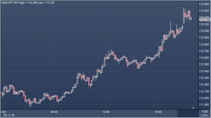 Приход нового президента к власти в надеждах инвесторов ассоциируется сейчас как раз с ускорением темпов роста американской экономики за счет увеличения государственных расходов на различного рода инфраструктурные проекты. Трамп обещал довести темпы роста ВВП до 5 %. Эти ожидания стоят за небывалой силой ростом курса доллара в ноябре. Так, по отношению к иене доллар прибавил от минимальных уровень в день оглашения результатов выборов уже более 13 фигур (11%) — феноменальный рост за такой короткий промежуток времени, которого не наблюдалось уже несколько десятилетий. Именно поэтому, думается, доллару будет трудно продолжить дальнейший рост: уже слишком много положительных событий будущего заложено в текущие высокие котировки американской валюты. Эксперты призывают трейдеров одуматься и допустить период некоторой консолидации/коррекции доллара.