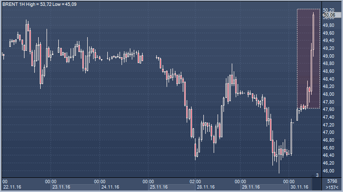 | 30.11.16 09:50 | Данные по запасам от API проигнорированы рынком: фокус на ОПЕК | 30.11.16 12:57 | Цены на нефть взлетели на 6% на первых комментариях ОПЕК из Вены |