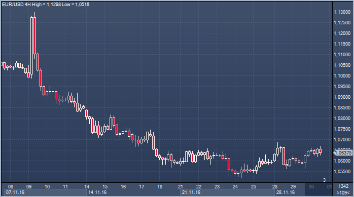 | 30.11.16 15:09 | Credit Suisse: торгуем валютой вместе с банком | 30.11.16 15:57 | Sberbank CIB ждет падения курса евро к доллару до $1.06 |
