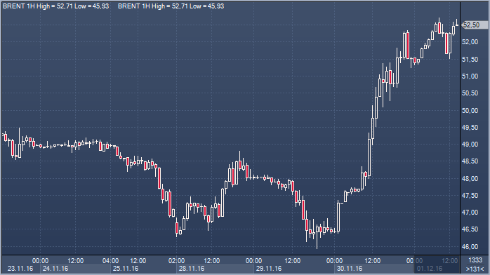 Вчера ОПЕК удивила рынки, сократив добычу нефти на 1.2 млн барр./сутки, до 32.5 млн барр./сутки. В результате, нефть взлетела в цене на 10%. Получив дополнительную поддержку от экспирации и перехода на новый контракт, сорт Brent со вчерашнего дня вырос до шестинедельного максимума почти в $53 за баррель. Соглашение о сокращении добычи вступает в силу с первого января 2017 года и делится между странами, что повышает прозрачность и убедительность сделки. При этом львиную долю совокупного сокращения добычи взяла на себя Саудовская Аравия (почти 500 тыс. барр./сутки). За исполнением соглашения будет наблюдать комитет. С другой стороны, этот объем является ничем более как просто коррекцией добычи до обычных зимних уровней, которую саудиты до сих пор не сделали (не иначе как из тактических соображений). Ирак также неожиданно проявил готовность урезать производство на 210 тыс. барр./сутки. Ирану же, напротив, позволили увеличить производство на 90 тыс. барр./сутки.