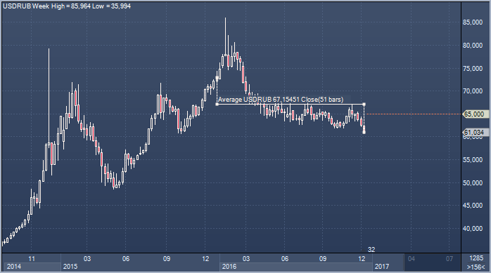 Аналитики BoAML отмечают, что улучшение атмосферы на рынке нефти будет способствовать улучшению ситуации с дефицитом бюджета, который в 2017 сократится до 1.3%, при этом динамика нефти и курса рубля открывают дорогу к дальнейшему снижению ставки Банка России, которое в 2017 составит 2.00%. Смягчение политики центробанка предполагает ослабление поддержки рублю со стороны кэрри-рейд, и в BoAML придерживаются прогноза по доллар/рублю на 2017 на уровне 65 рублей за доллар США.