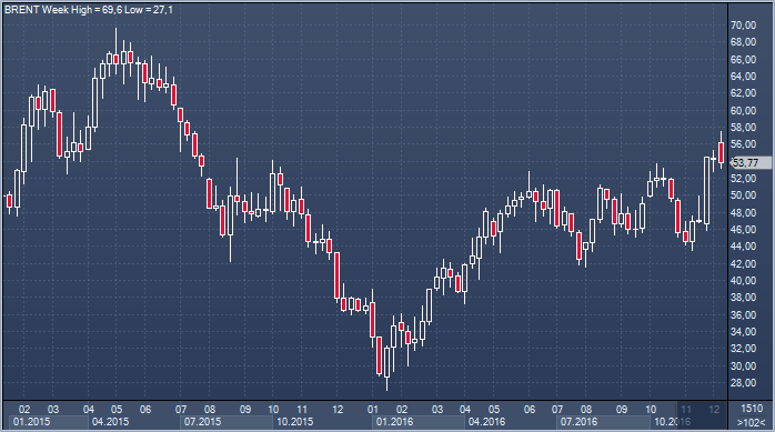 Аналитики Goldman Sachs отмечают, что, хотя сокращение добычи ОПЕК оказалось ниже ожиданий, а уверенности в том, что взятые обязательства будут исполнены в полной мере, нет (В GS прогнозируют сокращение добычи ОПЕК в 974 000 б/с, других участников сделки — в 388 000 баррелей в сутки), сделка все же обеспечивает устойчивую платформу для быков. Неопределенности относительно участия в сокращении добычи странами, не входящих в картель, более нет, и поддержка в районе $55 выглядит достаточно прочной.