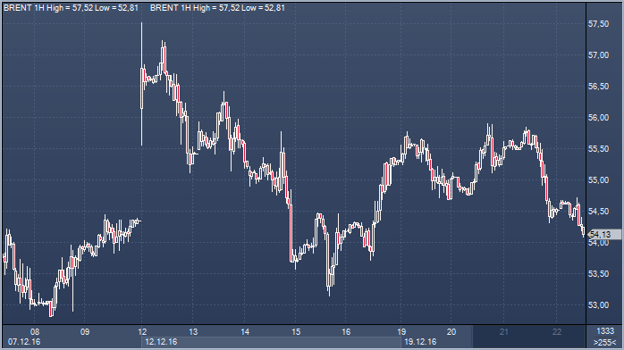 Цена Brent останется в диапазоне 54.00-54.80/барр., потенциал роста исчерпан. Неожиданное увеличение запасов нефти в хранилищах, о котором сообщило Управление энергетической информации США в среду, оказало дополнительное негативное влияние на перекупленный рынок нефти. После прорыва поддержки на уровне $54.80/барр. (10-дневное скользящее среднее значение) котировки Brent подходят к нижней границе 9-месячного канала, которая сейчас находится на отметке $54/барр. Рынок нефти перекуплен, и торговая активность продолжает сокращаться. Большинство игроков стремятся зафиксировать прибыль перед Рождеством и Новым годом, поскольку завтра и в следующий понедельник рынки будут закрыты. Длинные позиции спекулянтов достигли рекордно высокого уровня как по количеству контрактов, так и по объемам, что может усилить давление на рынок на фоне негативного потока новостей.