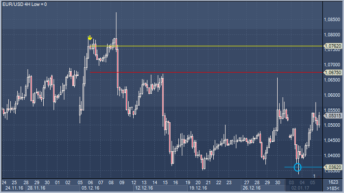 Евро/доллар.Продажа 6 декабря от 1.0762 закрыта на 1.0362 (по рынку). Прибыль 400 пунктов.