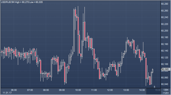 Баррель нефти Brent подешевел до менее $54, минимального уровня за последний месяц, что отчасти обусловлено уточненным прогнозом нефтедобычи в США на 2017 год, который вчера представило Управление энергетической информации (EIA). Сегодня в 18:30 ждем данные EIA по товарным запасам нефти в США. Когда месяц назад котировки Brent последний раз находились на указанном уровне, пара доллар/рубль приближалась к уровню 62.00. Мы прогнозируем, что курс рубля снизится вслед за ценами на нефть. Наш официальный целевой уровень по паре доллар/рубль на сегодня составляет 60.50, что является минимумом за период с середины декабря, последний раз он наблюдался непосредственно перед повышением ставки ФРС США.