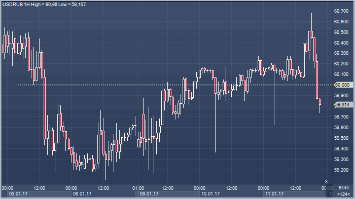 Ранее утром мы предупреждали, что рубль способен подпортить настроение доллару. Что, собственно говоря, и наблюдается в настоящий момент. Цены на нефть сегодня демонстрируют бычье поглощение. Brent вернулся выше 55 долларов за баррель. При поддержке позитивной динамики нефтяных котировок и высокой доходности рублевых облигаций курс доллар/рубль довольно быстро вернулся ниже ключевой отметки 60.00 после взлета до 60.65 на комментариях Рекса Тиллерсона. Что касается того, что сказал сегодня кандидат на пост госсекретаря США, которого должен утвердить Конгресс, то рыночные участники расценили это так — он сказал то, что Конгресс хотел бы услышать. Доллар при этом дешевеет против других основных валют на Forex, что подпитывает силу российской валюты.