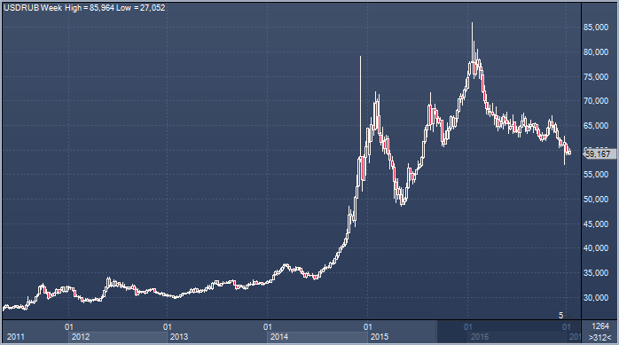 Рубль выглядит "в целом соответствующим" ценам на нефть, долгосрочной реальной эффективной ставке (REER) и дифференциалам производительности труда, считает экономист Citigroup Иван Чакаров. Это является доводом против неизбежного вмешательства Банка России. Если Банк России и должен будет вмешаться (провести интервенцию, направленную на ослабление рубля - прим. PFS)на тех же уровнях, на которых он делал это в мае 2015 года (с учетом REER), то в паре USD/RUB этим уровнем является отметка 56.8. Если определять этот уровень на основе различий в уровне производительности, то им была бы отметка 54.4. Рубль повышается на 1.17% во вторник до 59.17 за доллар, увеличивая рост за последние два месяца до более чем 9%. Впервые за полтора года рубль преодолевал сегодня отметку в 59. Brent в рублях торгуется на 3307 рублей за баррель против 3024 в среднем за последние 12 месяцев. Это позволяет бюджету поплнить доходную часть, дестимулируя власти к регулированию курса. Начинают усиливаться разговры о снятии санкции с России. Сегодня об этом помечтал глава ВТБ Костин Источник: ProFinance.Ru - Новости рынка Форекс