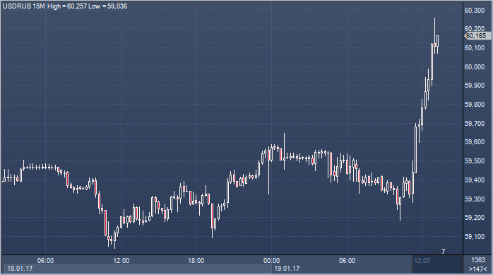 | 19.01.17 13:11 | Третья за сутки атака властей на рубль опрокинула российскую валюту! | 19.01.17 13:41 | ФРС поддержала доллар, следим за Мнучиным - Sberbank CIB |
