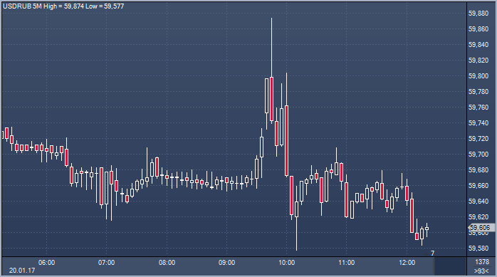 Таким образом, по официальному курсу ЦБ доллар вырос к рублю на 31 копейку, а евро вырос к рублю на 54 копейки по сравнению с официальным курсом пятницы. Объем сделок на Московской бирже к 12:23 мск пятницы составил 863.6770 млрд рублей или 14 551.7510 млн долларов. Курс рубля незначительно укреплялся к доллару в первые полчаса торгов, отражая рост курса евро/доллара, после чего ушел в диапазон в ожидании инаугурации Трампа. Последний может пролить свет на свою политику в ходе первой официальной речи в качестве президента США. Ранее на неделе Трамп раскритиковал рост доллара США. Вчера рубль потерял в весе, уйдя за отметку в 60, после выступления Шувалова, который заявил, что власти полны решимости снизить волатильность рубля за счет приобретения валюты, если цены на нефть будут превышать заложенную в бюджет отметку в $40 за баррель в среднем по году. На следующей неделе рубль будет расти в силу налогового периода, позабыв о словесной интервенции властей. Источник: ProFinance.Ru - Новости рынка Форекс