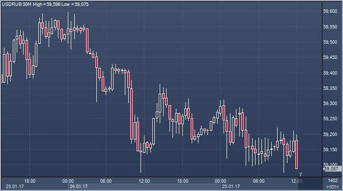 Доллар приблизился к важным уровням поддержки. Если они будут пробиты, рубль, возможно, сумеет укрепиться и выйдет из сформировавшегося узкого диапазона. Сегодня доллар/рубль может десятый день подряд остаться в коридоре между 59 и 60. На этой неделе активные продажи валюты экспортерами, особенно в утренние часы, нивелировались сокращением позиций иностранных инвесторов. В среду пройдут налоговые выплаты за январь в объеме порядка 700 млрд. руб.