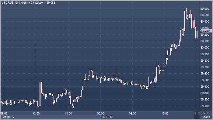 | 26.01.17 17:48 | Рубль рухнул, паника усиливается | 26.01.17 18:40 | Credit Agricole пробует заработать на снижении курса евро против доллара |