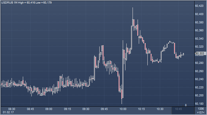 Сейчас курс рубля начал возвращать упущенное преимущество на фоне коррекции цен на нефть вверх и после выхода позитивных данных по экономике России. Индекс деловой активности PMI в обрабатывающей промышленности (Markit) в январе вырос до 54.7 пункта при прогнозе падения до 53.1 пункта с декабрьских 53.7 пункта. В пятницу состоится заседание Банка России. Оно не принесет никаких сюрпризов. 7 февраля начнутся интервенции Минфина против рубля. По нашим оценкам, они не окажут никакого влияния на курс рубля. Его рост возобновится вместе с возобновлением экономического роста в России. Сегодня все ждут итогов заседания Федеральной резервной системы (ФРС). Федрезерв завершает двухдневное совещание, и, по мнению подавляющего большинства экспертов, сохранит целевой диапазон процентной ставки по федеральным фондам от 0.50% до 0.75% годовых. Экономисты ожидают подтверждения политики реинвестирования портфеля активов ФРС и минимального пересмотра формулировок итогового заявления.