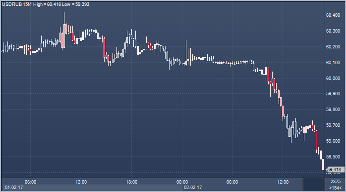 Курс доллара к рублю, тем временем, не сумев преодолеть верхнюю границу торгового диапазона, вновь снижается с прицелом на 59 рублей за доллар США. Источник: ProFinance.Ru - Новости рынка Форекс