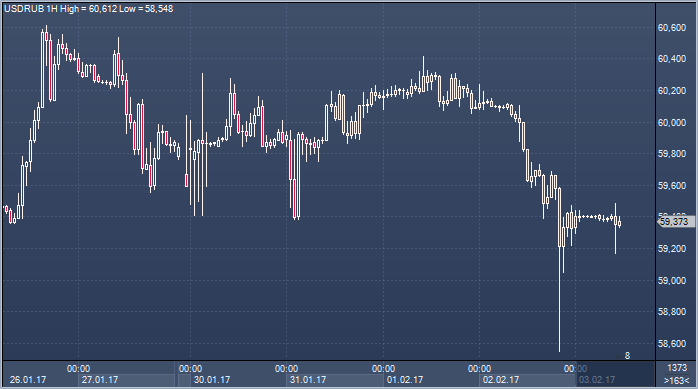 Мы думаем, рынок все же сможет отреагировать на действия российского Минфина по покупке валюты, когда реально убедиться, что те $100 в день, которые ведомство собирается покупать, пока цена на нефть находится выше $40 за барель, как-то действительно влияют на баланс краткосрочного спроса и предложения. А пока можно констатировать, что рынку это не интересно. Зато могут порадоваться иностранные инвесторы, которые вкладываются в Россию, создавая серьезный навес предложения валюты. Российский сектор услуг в январе 2017 года расширялся двенадцатый месяц подряд, поскольку композитный индекс PMI, рассчитываемый компанией Markit, не только остается выше порогового уровня спада/роста в 50 пунктов, но и вырос до максимального уровня за восемь с половиной лет. Индекс менеджеров по закупкам (PMI) сектора услуг в январе вырос до 58.4 пункта с 56.5 пункта в декабре при прогнозе в 55.8 пункта. В среду были опубликованы данные о PMI производственного сектора в январе, также показавшем рост, а данные Росстата о снижении ВВП России в 2016 году показали рецессию всего на 0.2 %. Экономический спад в 2015 году также был пересмотрен до 2.8% с первоначальных 3.7%. Инфляция в 2016 году составила 5.4% - минимум за всю новейшую историю России (из данных в целом за год). По итогам 2017 года ЦБ РФ рассчитывает достичь цели по инфляции в 4%.
