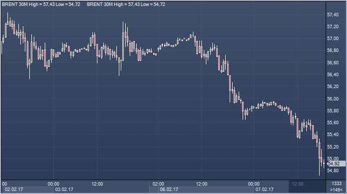 Цены на нефть существенно снизились на торгах во вторник на фоне усиления ожиданий роста добычи в США и ослабления спроса на сырьё, из-за роста курса доллара. Рынок обратил внимание на непрекращающееся увеличение числа буровых установок в США. За неделю, завершившуюся 3 февраля, число буровых установок в США выросло на 17 единиц до 583, показал в пятницу отчет нефтесервисной компании Baker Hughes. Иран, освобожденный от сокращения добычи в рамках соглашения ОПЕК, наращивал производство все последние месяцы, доведя его до 3.8 миллиона баррелей в сутки, а также продавал сырье из накопленных за годы санкций запасов, сократив их до 25 миллионов с 75 миллионов баррелей. Экономисты BMI прогнозируют увеличение нефтедобычи в Нигерии в 2017 году в случае возобновления выплат боевикам. Добыча может вернуться к уровню в 2.2 миллиона баррелей в сутки. Давление на рынок оказало и укрепление доллара, и обилие спекулятивных лонгов.
