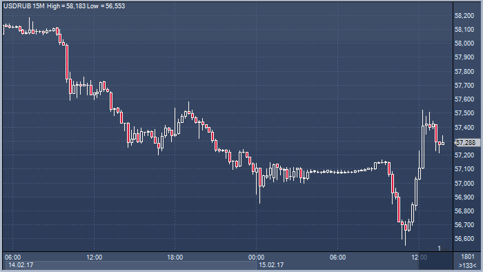 | 15.02.17 13:33 | Sberbank CIB предостерегает от игры на повышения рубля | 15.02.17 14:23 | Доллар воодушевленно наступает на своих основных конкурентов |
