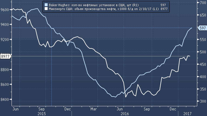 количество нефтяных установок увеличилось на 6 до 597 шт.