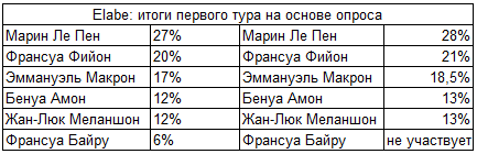 С каждым новым днем результаты опросов выглядят все более тревожными, и сегодня данные Elabe, собранные для телевизионного канала BFMTV, что уровень ее поддержки вырос с 25.5% до 27% (с 26% до 28% при сценарии, когда в выборах не будет участвовать кандидат от центристов Франсуа Байру*), тогда как Эммануэль Макрон по сравнению с опросом, проведенным две недели назад этой же компанией, потерял 5% и теперь занимает третье место после Фийона, поддержка которого выросла на 3 процентных пункта.