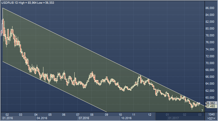 Курс рубля медленно, но верно, растет в рамках восходящего тренда