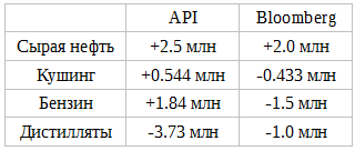 Напомним, что ночные цифры от API и позавчерашние от Bloomberg (средний прогноз экспертов), выглядели следующим образом (в баррелях): Источник: ProFinance.Ru - Новости рынка Форекс