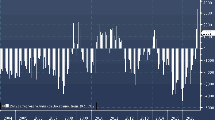 Австралия. Сальдо торгового баланса в январе +A$1.302 млрд. против прогноза +A$3.8 млрд. и против +A$3.334 млрд. (пересмотрено с +A$3.511 млрд.)