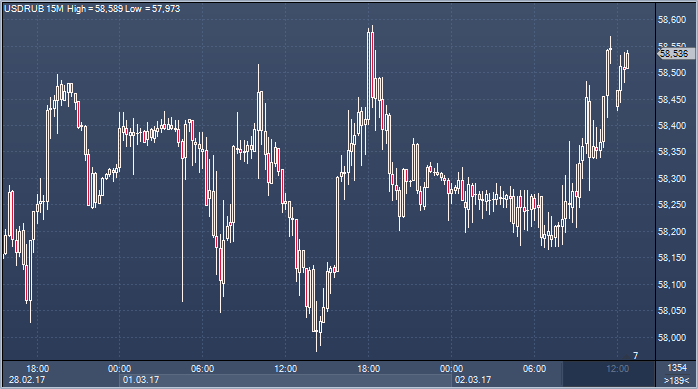 | 02.03.17 12:19 | Sberbank CIB все еще надеется на тестирование рублем отметки 58.60 | 02.03.17 13:19 | Почему растет курс доллара США? Версия Wall Street Journal |