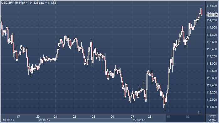 Восходящий моментум в USD/JPY может позволить протестировать 114.95 в течение следующих недель, утверждают FX-стратеги UOB. "Резкое ускорение подъема было неожиданным, так как USD последовательно пробил несколько сильных сопротивлений. Хотя очевидно, что рынок перекуплен, текущее ралли, как представляется, имеет возможности для дальнейшего расширения до 114.45/50. Тем не менее, не ожидается, что пик прошлого месяца на 114.95 окажется под серьезной угрозой.