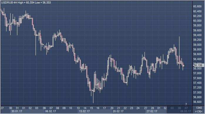 Мы прогнозируем среднюю цену нефти в этом году на уровне $61/барр., что поддержит восстановление текущего счета. Позиция Банка России, тем временем, остается жесткой: мы прогнозируем снижения ключевой ставки в этом году суммарно на 150 б.п., и на 50 б.п. в 2018 году. Таким образом, на конец 2017 года мы прогнозируем курс рубля на уровне 60 руб./долл. Источник: ProFinance.Ru - Новости рынка Форекс