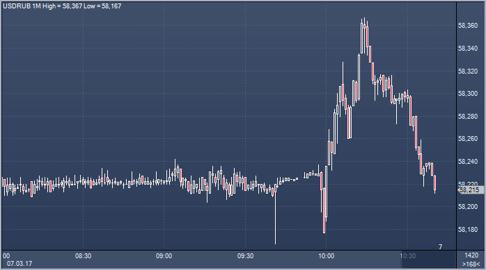 Курс рубля открылся во вторник небольшим снижением к доллару США и евро. Первые сделки по доллару США прошли на Московской бирже в диапазоне 58.18-58.27 рубля за доллар, а сейчас курс составляет 58.27 (+8 копеек к уровню предыдущего закрытия). Евро повысился до 61.66 рублей за евро (+8.8 копейки), стоимость бивалютной корзины выросла на 8.3 копейки по отношению к уровню закрытия понедельника, составив 59.8 рубля. Доллар при этом оказался на 6.7 копейки дороже уровня действующего официального курса, евро - на 19.3 копейки выше официального курса. Это снижение мы считаем малозначащим и связываем его даже не с реакцией на динамику нефтяных цен, а с впечатлением российских валютных трейдеров от того, как могут быть разочарованы нефтяные трейдеры действиями России. Москва пока не торопится сокращать добычу и заявляет о том, что пока рано говорить о пролонгации сделки с ОПЕК. Неудивительно — глядя на то, как высвобождающуюся нишу занимают американские сланцевики, Россия не готова терпеть конкуренцию в ключевой для себя отрасли с США. Похоже, Москва готова рискнуть, у нее есть козырь — плавающий курс рубля, который защитит не только российский нефтяников, но и всех российских производителей в случае нового обвала цен на нефть. Механизм управляемого флоатинга уже доказал свою действенную силу после кризиса 14-15 годов.