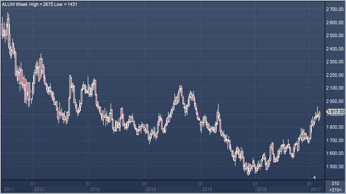 Мы ожидаем, что на рынке алюминия образуется дефицит в 235 тыс. тонн в 2017 году и 373 тыс. тонн в 2018 году. Небольшой дефицит металла может спровоцировать рост цен на него. Мы прогнозируем, что к четвертому кварталу 2017года/ первому кварталу 2018 года цены на LME преодолеют планку в $2000 за тонну, в связи с чем подняли прогноз цен на 2017 и 2018 годы на 17% и 26% соответственно. В ближайшие три месяца цен на алюминий поднимутся благодаря росту китайской и мировой экономики. Правда, мы не ждем значительного ралли, поскольку рынок алюминия уже отыграл новости из Китая о сокращении мощностей: фактическое сокращение производственных мощностей произойдет лишь через 6-7 месяцев после ралли на рынке. Источник: ProFinance.Ru - Новости рынка Форекс