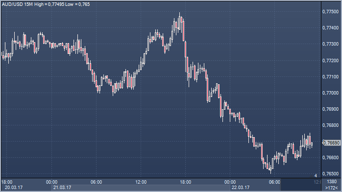 Индекс доллара США опустился ниже психологически важной отметки в 100 пунктов, сегодня он теряет 0.04%, находясь на уровне 99.77 пункта. Доходность по 10-летних казначейских облигаций продолжила снижаться в Азии после того, как президент Федерального резервного банка Кливленда Лоретта Местер, не обладающая правом голоса в FOMC, призвала ФРС продолжить постепенное повышение ставок и сократите баланс с $4.5 триллиона, если экономика продолжит улучшаться. AUD/USD падал на 0.5% до 0.7650, потеряв фигуру со вчерашнего пика, а сейчас корректируется до 0.7669. Биды, связанные с опционами, около 0.7690, были пробиты после закрытия торгов в Нью-Йорке. Источник: ProFinance.Ru - Новости рынка Форекс