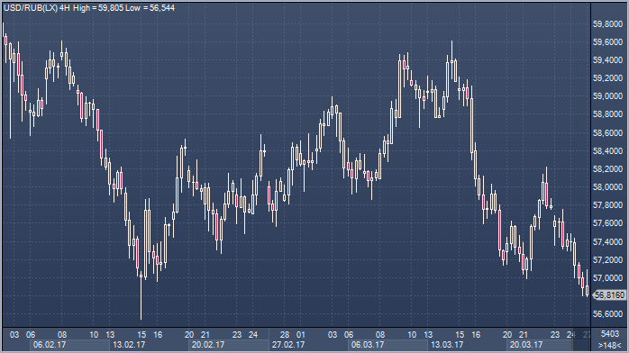 | 27.03.17 11:08 | Курс рубля снижается после комментариев Новака; доллар рухнул из-за неудачи Трампа | 27.03.17 12:00 | Рубль тестирует максимумы: Росбанк готов признать ошибочность прогноза |