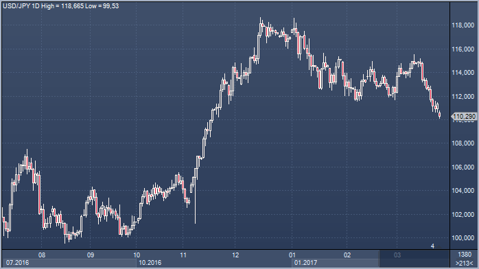 Тем не менее, все вышесказанное не затрагивает среднесрочной перспективы. Что касается (1) - (3), ФРС продолжит изыскивать возможности для дальнейшего повышения ставок. (4) Мы полагаем, что доходность пойдет вверх, поскольку устойчивый рост экономики США подтвержден. (5) Мы считаем, что было бы преждевременно ставить крест на налоговой реформе Трампа (например, льготы для среднего класса, сокращение корпоративного налога), некорректно ставить ее в зависимость от судьбы реформы сиситемы здравоохранения (хотя, его налоговые предложения могут стать более простыми). (6) Нет никаких ожиданий перемен в макроэкономической политике под названием Абэномика, и нет никаких видимых альтернатив Абэ в качестве лидера страны. (7) Большая часть потока, связанного с репатриацией капитала в связи с окончанием финансового года в Японии, должна иссякнуть к середине марта. (8) Ожидается, что шаги Федерального резерва по ужесточению денежно-кредитной политики будут проходить быстрее, чем шаги ЕЦБ, направленные на свертывание программы количественного смягчения.