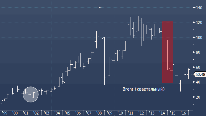 Сегодня Картель добывает 40.2% всей мировой нефти, что несколько ниже августовского пика в 41.3%, но все же ощутимо выше показателя ноября 2014 года в 38.8%. Напомним, что в 2001 году ОПЕК также сокращала добычу в целях защиты от снижения цен, и тогда ее доля рынка к апрелю 2002 года опустилась до 35.9%.