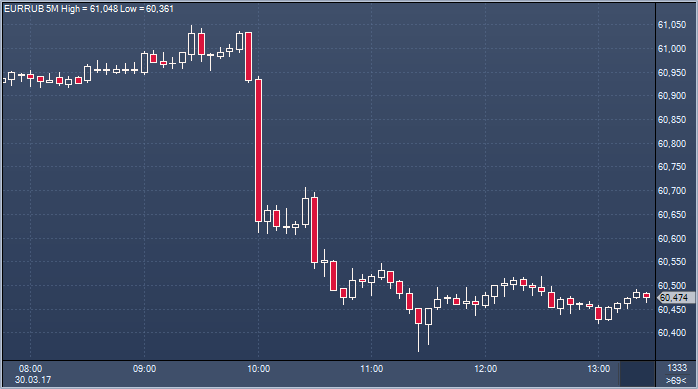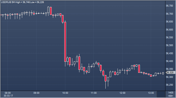 | 30.03.17 12:54 | Путин может поблагодарить Зума за рост рубля | 30.03.17 15:49 | Ниже 56 по доллару к рублю могут быть большие стопы — Ренессанс Капитал |