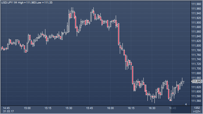 USD/JPY снизился до сессионного минимума на 111.54 с уровня 111.70, на котором торговался в течение ночи, поскольку доходность 10-летних облигаций Казначейства опустилась к новому минимуму. Движения произошли после того, как Уильям Дадли из ФРС сказал, что еще 2 повышения ставок в этом году кажутся «разумными». Также он сказал, что нет большой срочности ужесточать монетарную политику, учитывая что экономика явно не перегрета. Небольшое смягчение риторики, прокомментировал его выступление один дилер в Нью-Йорке. USD поддерживался ранее бидами на ~ 111.70 на электронной платформе, но они внезапно «исчезли», сказал дилер. Предложения на продажу стоят как и раньше выше 112.25 со стопами выше 112.30, говорили дилеры в Азии и Европе. Обороты FX довольно небольшие, так как японские банки отошли от торговли в конце финансового года. USD может найти поддержку на ~ 111.50, где истекают большие опционы в 10:00 по восточному времени.