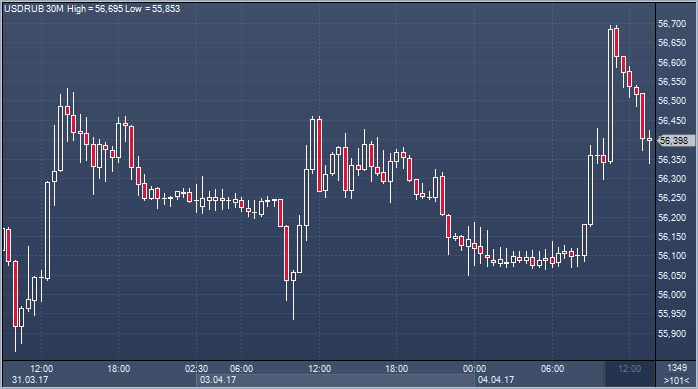 Тем не менее сегодня на открытии сессии цены на нефть оказались под давлением после новостей о том, что Ливия восстанавливает добычу нефти до 660 тыс. барр./сут после возобновления работ на крупнейшем месторождении Шарара. Выполнение обязательств ОПЕК по сокращению добычи будет зависеть от того, каким был вклад Ливии и Нигерии в общий показатель в марте. Мы ожидаем, что курс доллара к рублю сегодня подрастет, приблизившись к отметке 56.80, на обменный курс могут повлиять колебания цен на нефть. Источник: ProFinance.Ru - Новости рынка Форекс