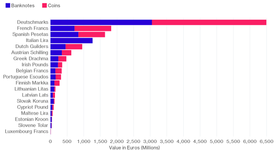 Возможно, жителям европейских стран, отказавшихся от своей денежной единицы в пользу евро, вероятно, стоит проверить пространство под матрасами и прочие секретные места. Итальянцы, французы, немцы и граждане остальных стран Еврозоны в совокупности хранят у себя старые вышедшие из обращения банкноты и монеты на сумму более 15 млрд евро – это примерно равно ежегодному объему импорта в Латвии. Чуть менее половины этих тайных сокровищ находится на территории Германии, известной своей любовью к наличным деньгам, хотя она перешла на евро на десять лет раньше той же Латвии или Литвы.
