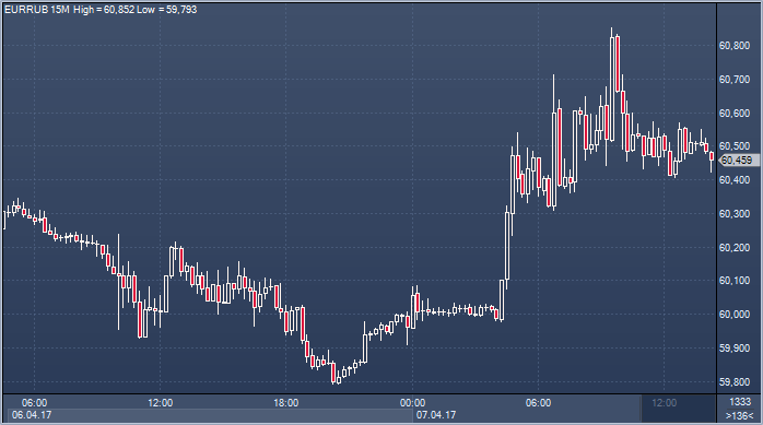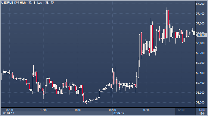 | 07.04.17 14:16 | Райффайзенбанк прогнозирует снижение рубля после атаки США | 07.04.17 16:15 | Доллар заметался на фоне смешанного отчета по рыкнку труда, но в итоге решил расти |